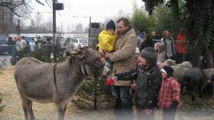 schenken an der Hüttenbar aus und beschenken die Kinder – Esel und